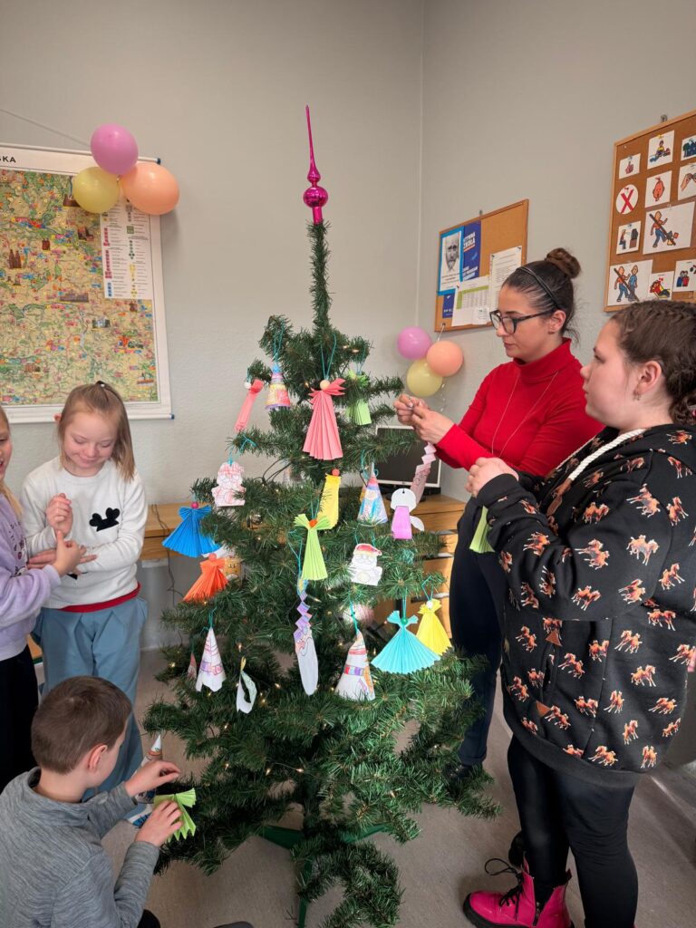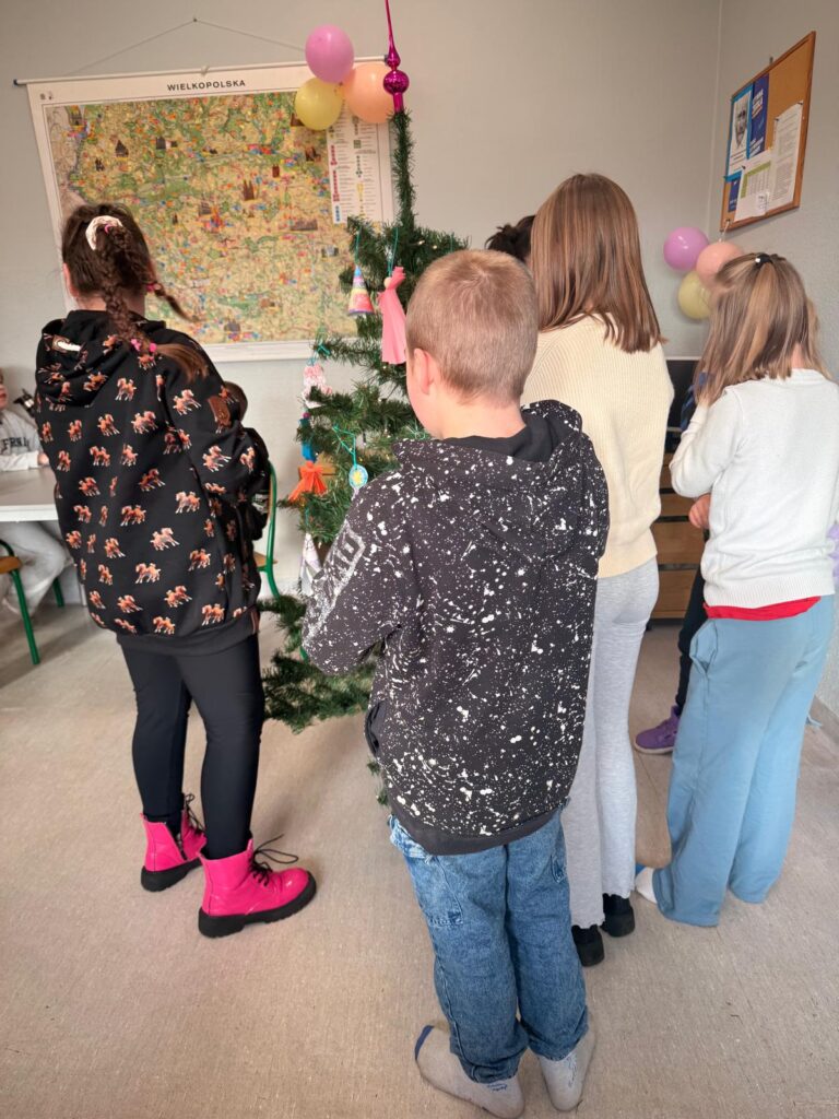 Na początku grudnia uczniowie wspólnie wykonywali ozdoby choinkowe. Podczas zajęć plastycznych rozwijali swoją kreatywność i zdolności manualne, tworząc kolorowe łańcuchy, bombki i inne dekoracje. Następnie wszyscy razem ubrali świetlicową choinkę, co wprowadziło świąteczny klimat.