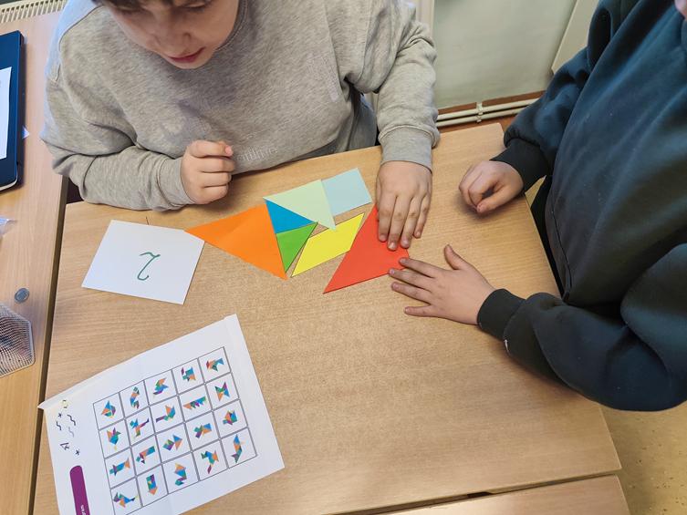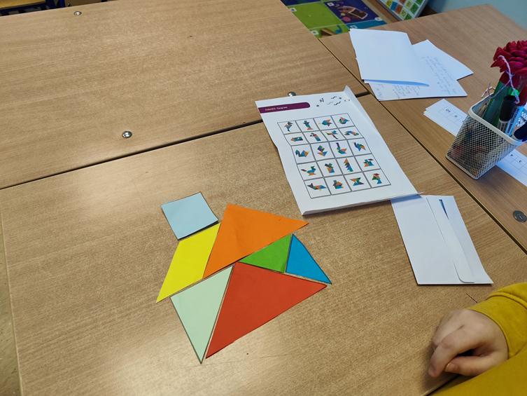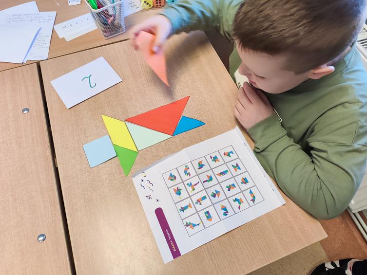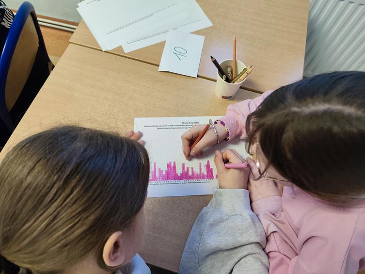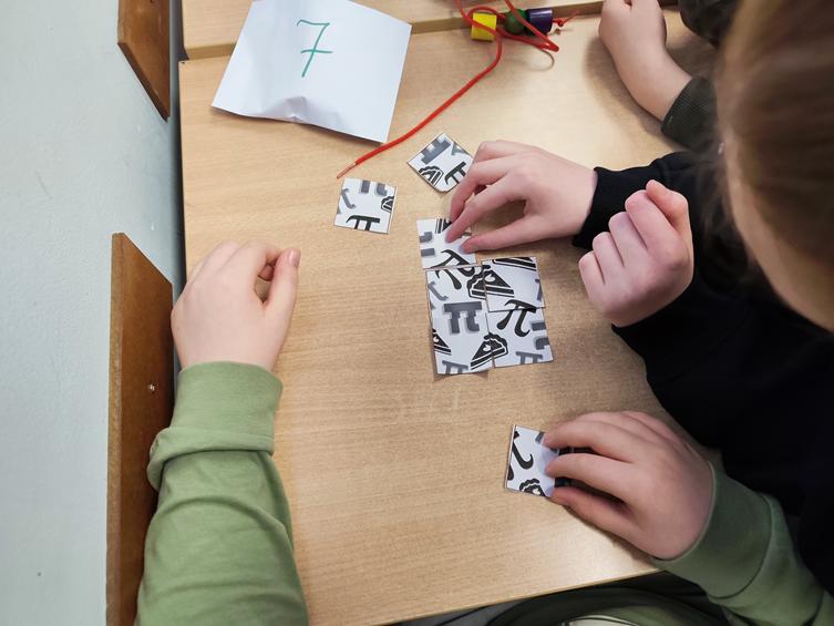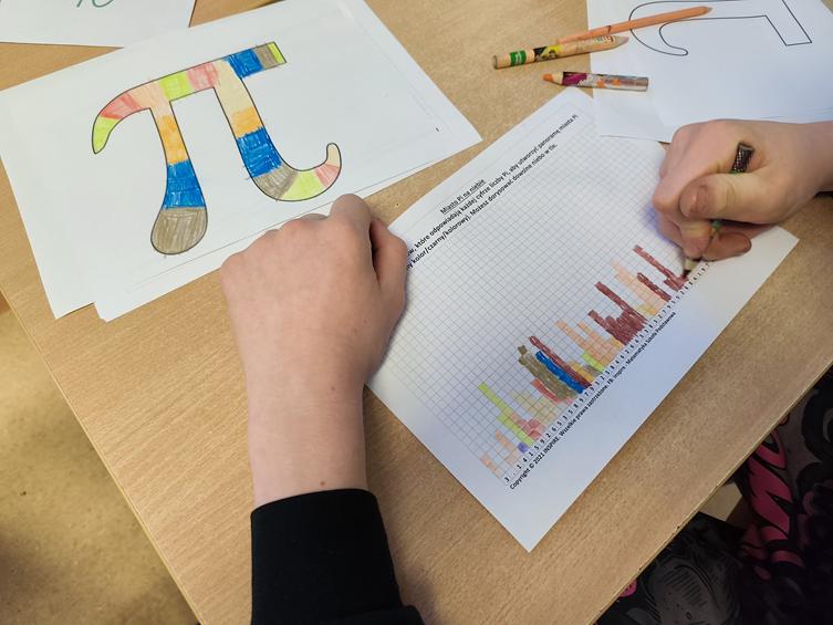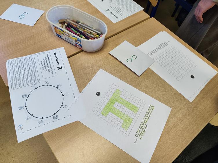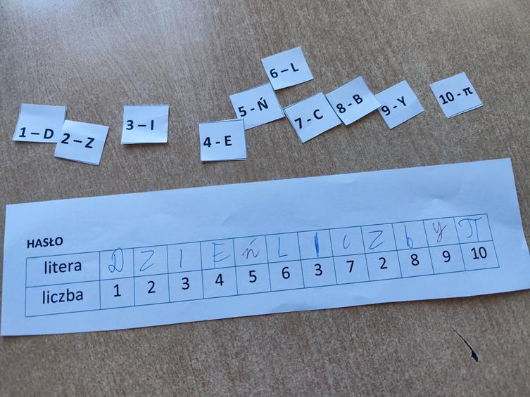 symbol π, układanie puzzli, wymyślanie wyrazów zaczynających się od „pi” oraz tworzenie „miasta π”. Uczniowie świetnie poradzili sobie ze wszystkimi zadaniami i każdej klasie udało się rozszyfrować hasło „Dzień Liczby Pi”.