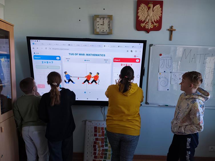 Tego dnia odbyły się także międzyklasowe zmagania z tabliczki mnożenia. Najlepsi okazali się uczniowie klasy 4, którzy zwyciężyli w matematycznej rywalizacji. To był dzień pełen matematycznych emocji, dobrej zabawy i wspólnego odkrywania, że matematyka może być πękna.