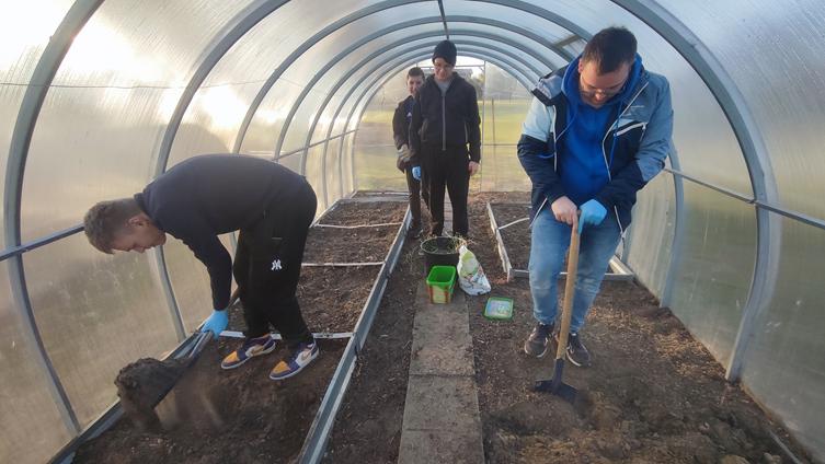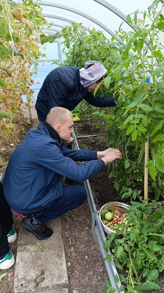 W ramach zajęć ogrodniczych uczestnicy projektu wykonują prace ogrodniczo-pielęgnacyjne na terenie Ośrodka. W tym roku, w tunelach foliowych prowadzili uprawę ogórków i pomidorów. Zajęcia te wdrażają uczestników w prace związane z uprawą i pielęgnacją roślin, a także umożliwiają poznanie ich różnorodności oraz zastosowania  w różnych kontekstach.