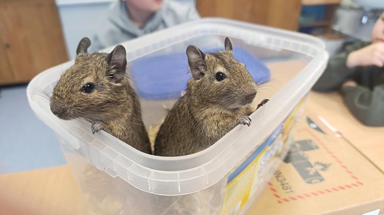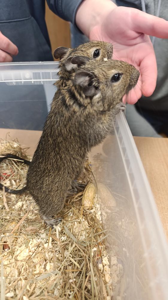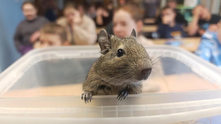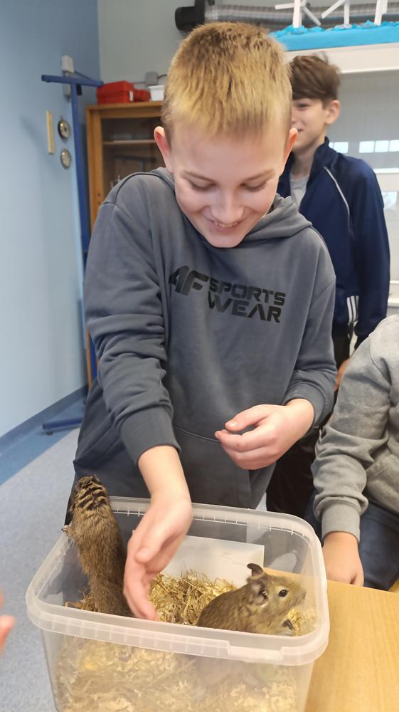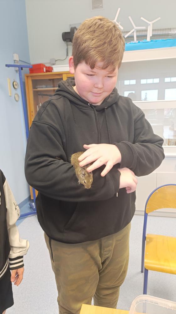 Uczniowie kl. 4 – 7 mieli niecodzienną okazję spotkać się z niezwykłymi zwierzątkami – koszatkami Krakersem i Waflem. Podczas spotkania opiekunka zwierząt – Natalia z kl. 6, opowiedziała o ich trybie życia, wymaganiach oraz zwyczajach. Uczniowie dowiedzieli się, czym żywią się koszatki, jak spędzają czas. Największą atrakcją była możliwość zobaczenia koszatek z bliska. Uczniowie z zaciekawieniem obserwowali ich zachowanie. Spotkanie było nie tylko świetną zabawą, ale także cenną lekcją biologii. Tego typu wydarzenia pokazują, jak ważna jest bezpośrednia obserwacja świata zwierząt i budowanie wrażliwości na przyrodę.