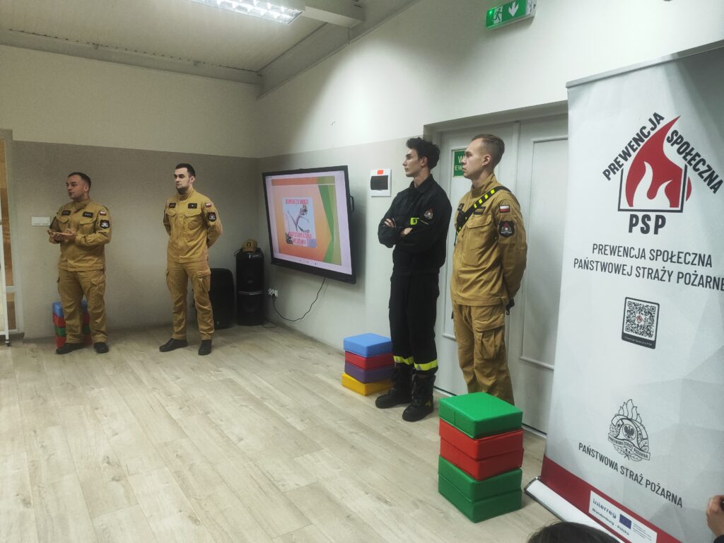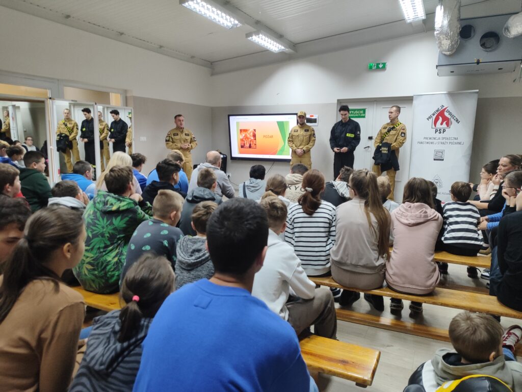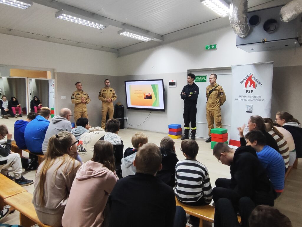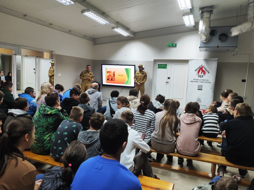 Dn. 15 października 2025 r. uczniowie klas IV-VIII uczestniczyli w spotkaniu z funkcjonariuszami Komendy Powiatowej Państwowej Straży Pożarnej we Wschowie nt. „Jak reagować w sytuacji zagrożenia pożarem”. Strażacy zaprezentowali różnego rodzaju sprzęt gaśniczy i wyjaśnili w jaki sposób z niego korzystać. Uczniowie utrwalili numery alarmowe oraz dowiedzieli się jakie informacje należy podać podczas zgłaszania pożaru. Funkcjonariusze opowiedzieli również o konsekwencjach bezpodstawnego wzywania służb. W trakcie spotkania uczestnicy otrzymali cenne wskazówki dotyczące bezpiecznych zachowań oraz zapobiegania sytuacjom zagrażającym życiu. Dziękujemy strażakom za podzielenie się swoją wiedzą i doświadczeniem.